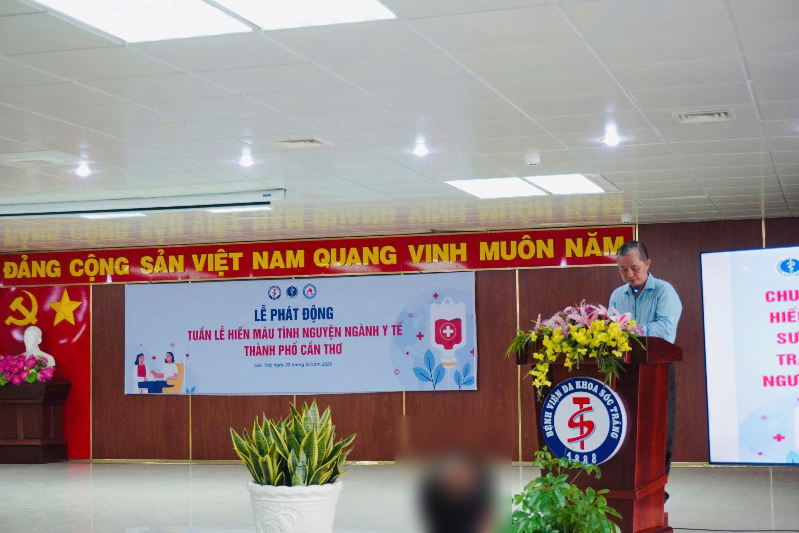 Sáng ngày 22/12/2025, tại hội trường Bệnh viện Đa khoa Sóc Trăng, Lễ phát động “Tuần lễ Hiến máu tình nguyện ngành y tế thành phố Cần Thơ” đã được long trọng tổ chức. Tham dự buổi lễ có ông Võ Quốc Trứ, Phó Giám đốc Sở Y tế thành phố Cần Thơ; bà Lê Thị Bạch Đàng, Phó Chủ tịch thường trực Hội Chữ Thập đỏ thành phố; ông Huỳnh Minh Phú, Giám đốc Bệnh viện Huyết học – Truyền máu TP. Cần Thơ; ông Đặng Minh Hiền, Giám đốc Bệnh viện Đa khoa Sóc Trăng; ông Lâm Ngọc Phước, Phó Giám đốc Bệnh viện Đa khoa Sóc Trăng cùng lãnh đạo các cơ sở, trung tâm y tế và đông đảo cán bộ, nhân viên y tế tham gia hiến máu.